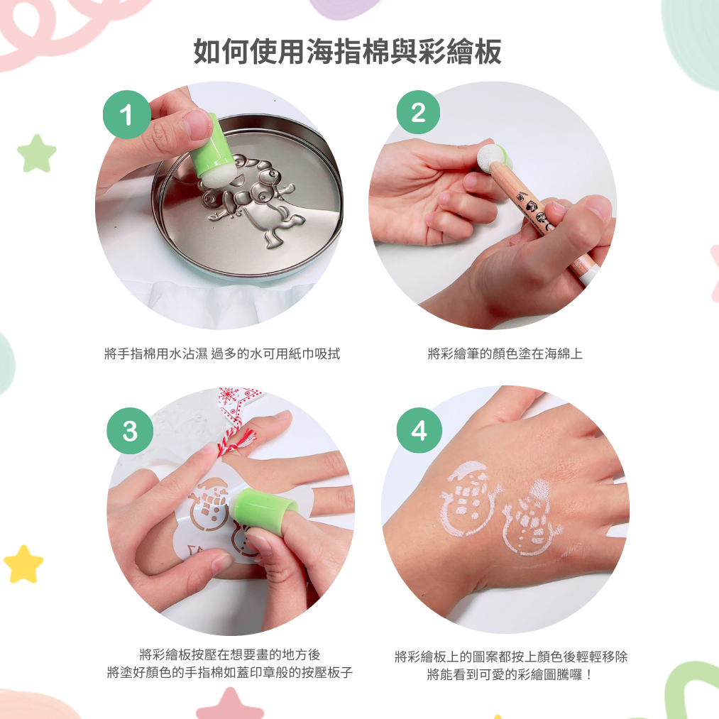 臉部彩繪模板讓彩繪變得簡單又有趣。多款可愛圖案設計,只需使用上色後的手指棉輕輕沾印,即可快速完成整齊好看的彩繪造型,即使是初學者或小朋友也能輕鬆上手。非常適合派對、角色扮演或親子創作時光,讓孩子自由發揮想像力,享受彩繪的樂趣。