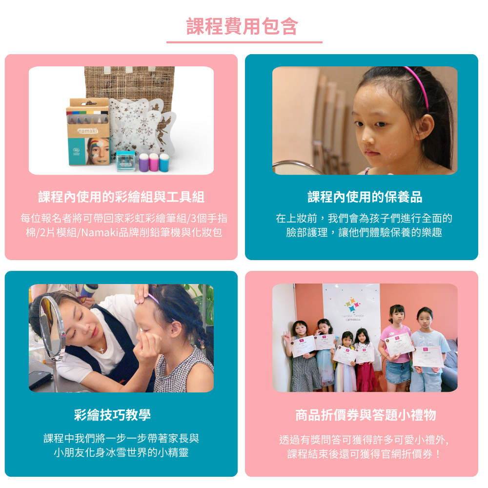 小班制的個人化教學,讓我們能更貼心地根據孩子的不同膚質與需求,調整適合的保養產品,並深入探索彩繪的技巧與理念。課程中還有驚喜的商品體驗, 讓孩子的變裝時光更豐富。歡迎5歲以上的孩子報名參加,一同開啟這場美麗的旅程!