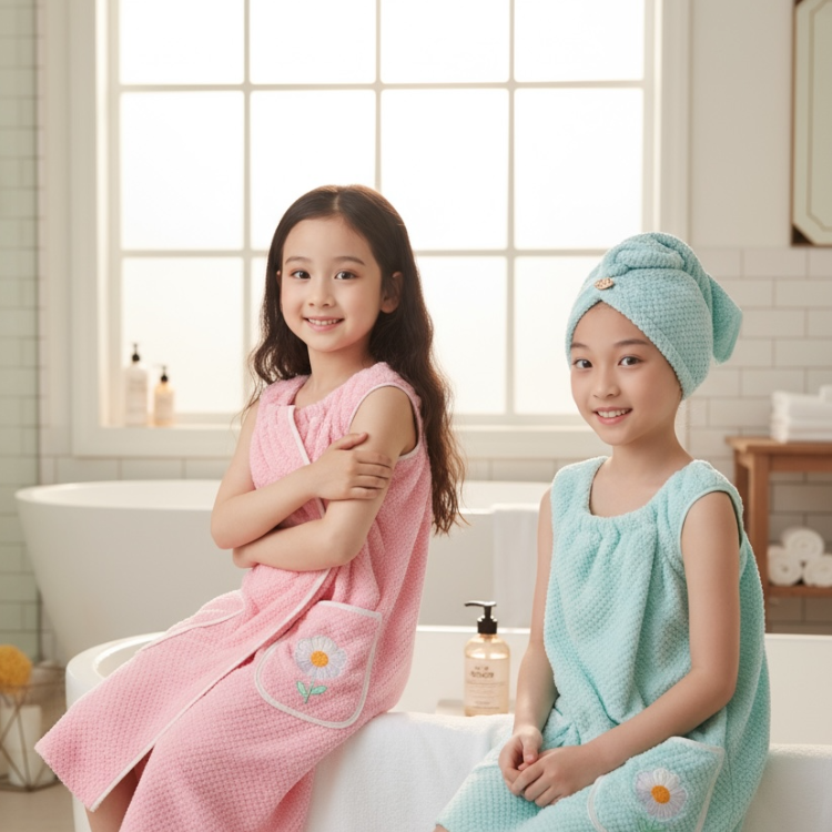 週末假期,讓寶貝穿上柔軟可愛的浴袍和髮帽,在家中與媽媽和姐妹們享受舒適的熱水澡, 家裡就是寶貝的專屬SPA!