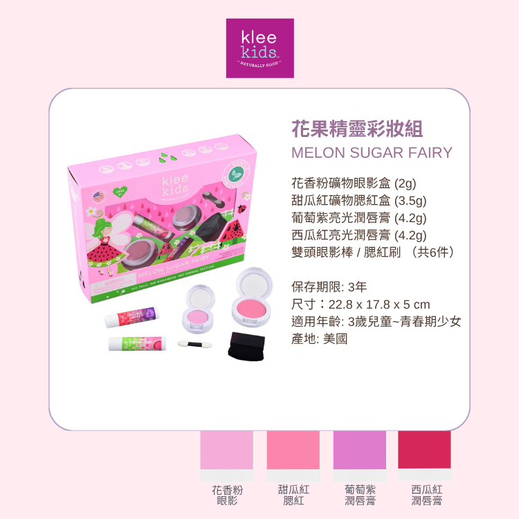 美國Klee Kids兒童礦物彩妝組3歲以上就可使用, 不刺激肌膚, 溫水即可卸除