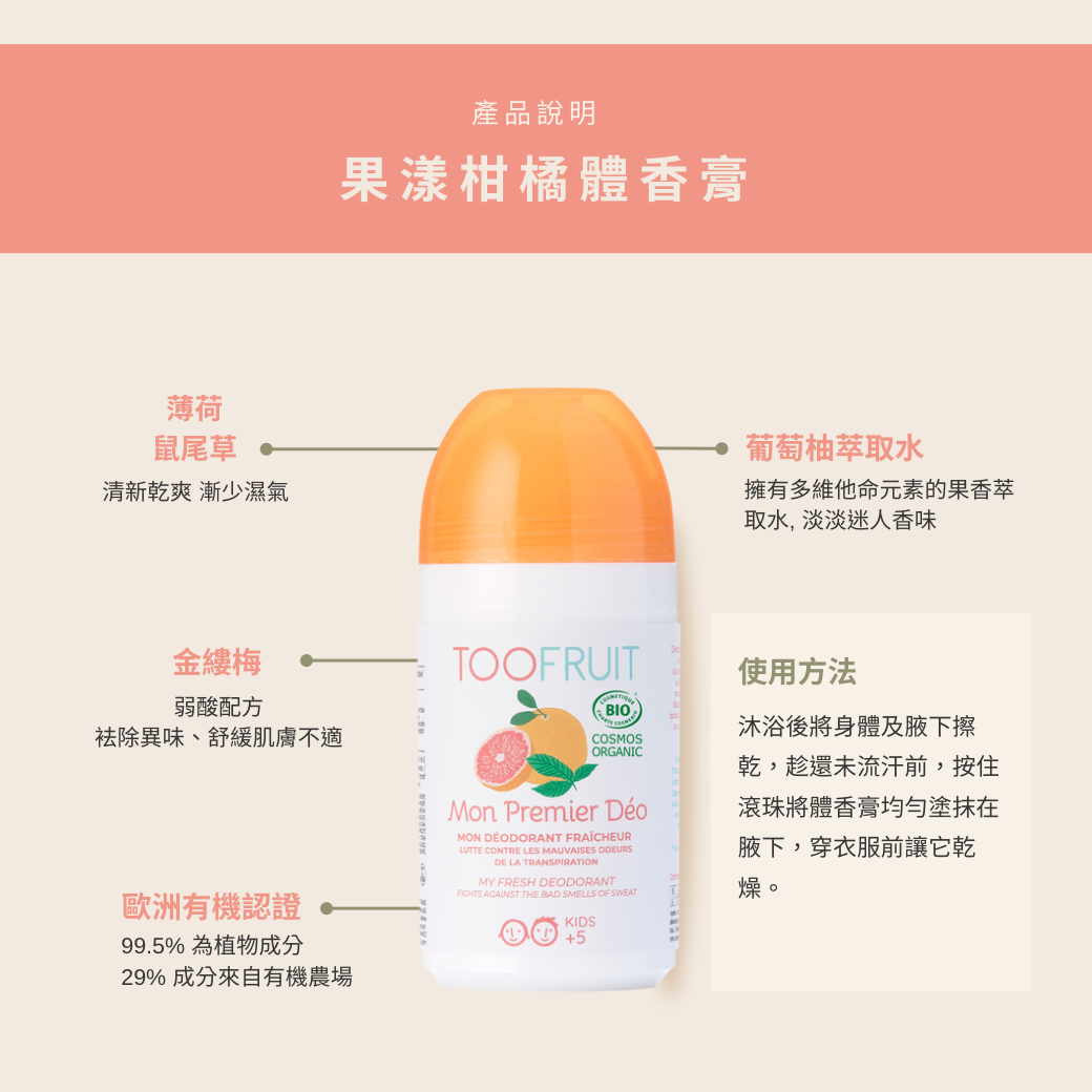 組合內包含每日必備的兒童有機沐浴乳與2瓶兒童有機體香膏, 可自搭款式