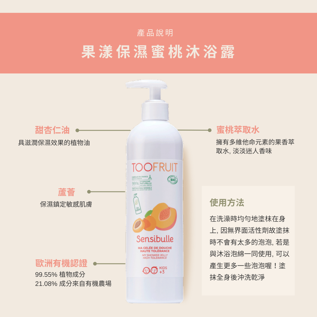 組合內容:果漾保濕蜜桃兒童沐浴露400ml + 果漾兒童體香膏(自選2款式)+ 時尚手提包與可愛浴帽(隨機出貨)