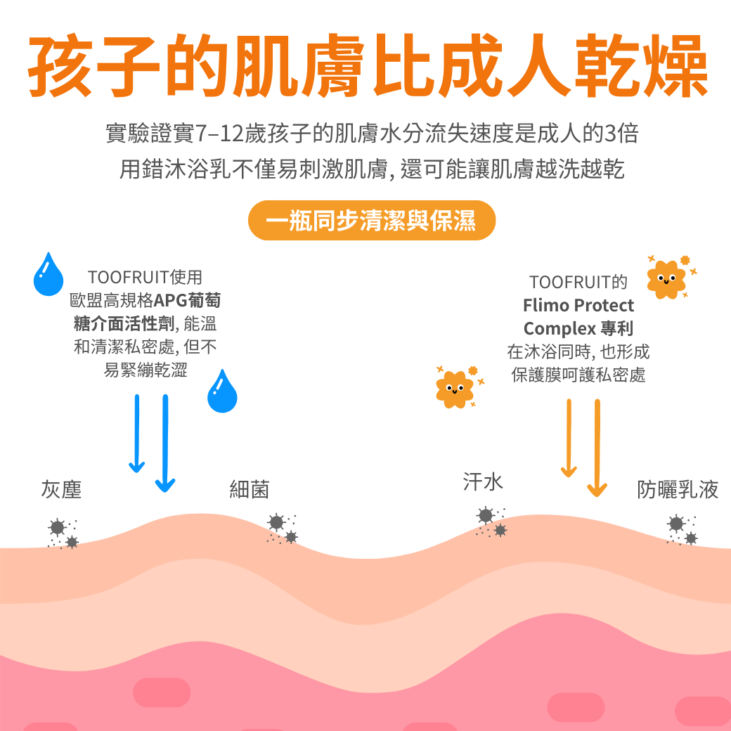 專為進入國小後因戶外活動變多的兒童使用, 適合國小生或青少年男女的沐浴組合.