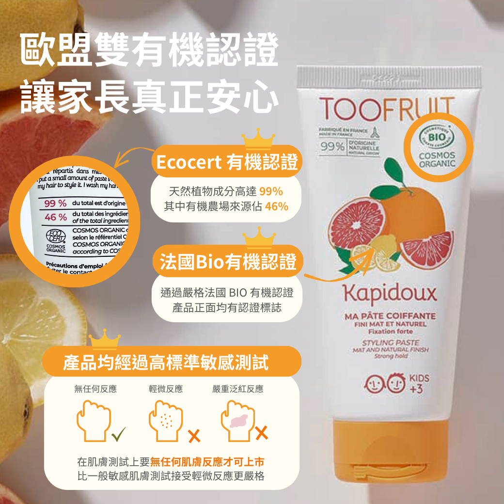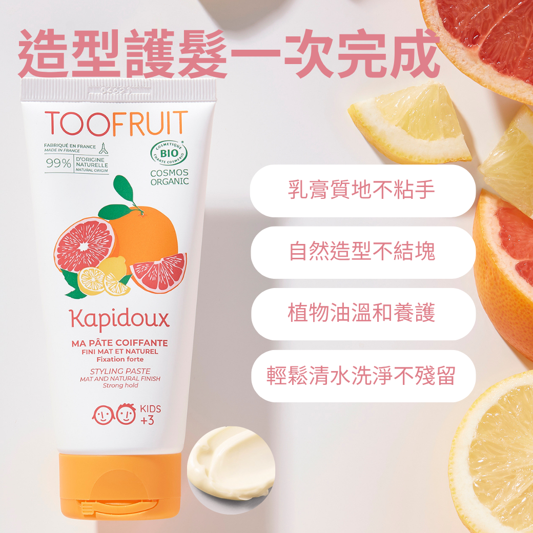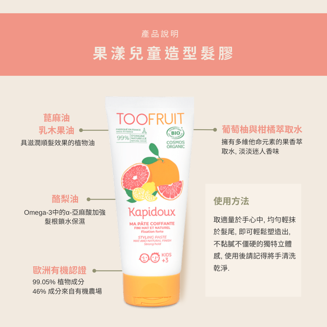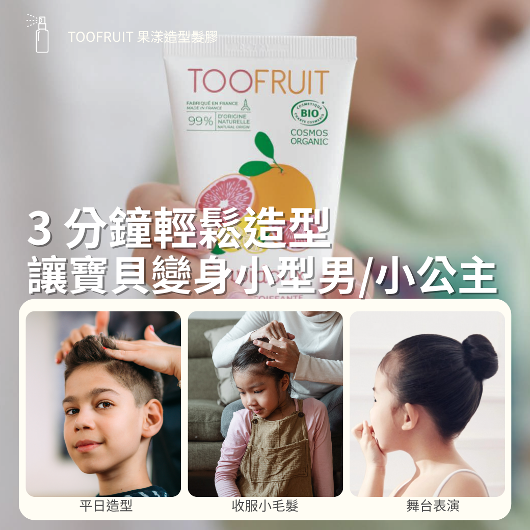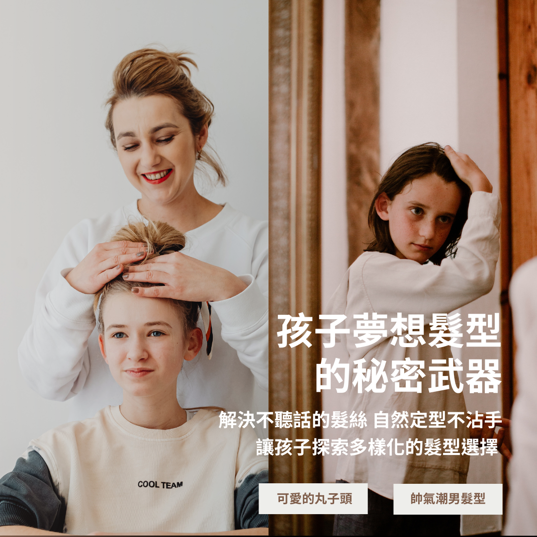 滿足孩子夢想造型的小幫手, 可任意塑造出小男孩想要的帥氣龐克或英國小紳士風, 小女孩喜愛的長髮公主造型或俏麗馬尾, 法國Bio有機認證, 介於髮蠟與髮膠之間的質地, 做出的造型自然不黏膩僵硬