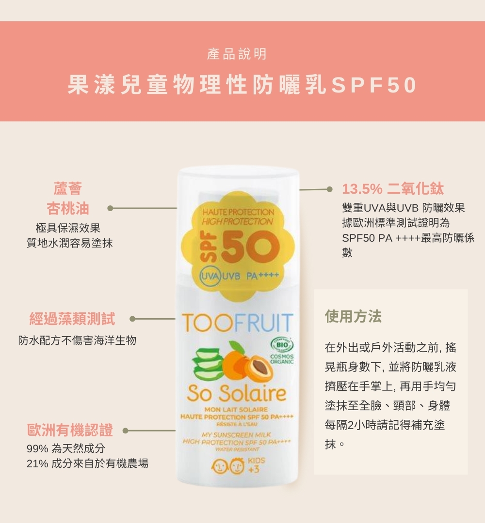 貼心小提醒:在中午12點至下午4點之間儘量不要讓孩子待在陽光下。建議可戴帽子、穿搭長袖及配戴太陽眼鏡。 防曬乳液也請每隔2個小時重複塗抹一次。