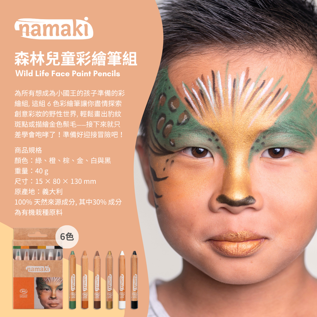 為所有想成為小國王的孩子準備的彩繪組, 這組 6 色彩繪筆讓你盡情探索創意彩妝的野性世界, 輕鬆畫出豹紋斑點或描繪金色鬃毛——接下來就只差學會咆哮了!準備好迎接冒險吧!